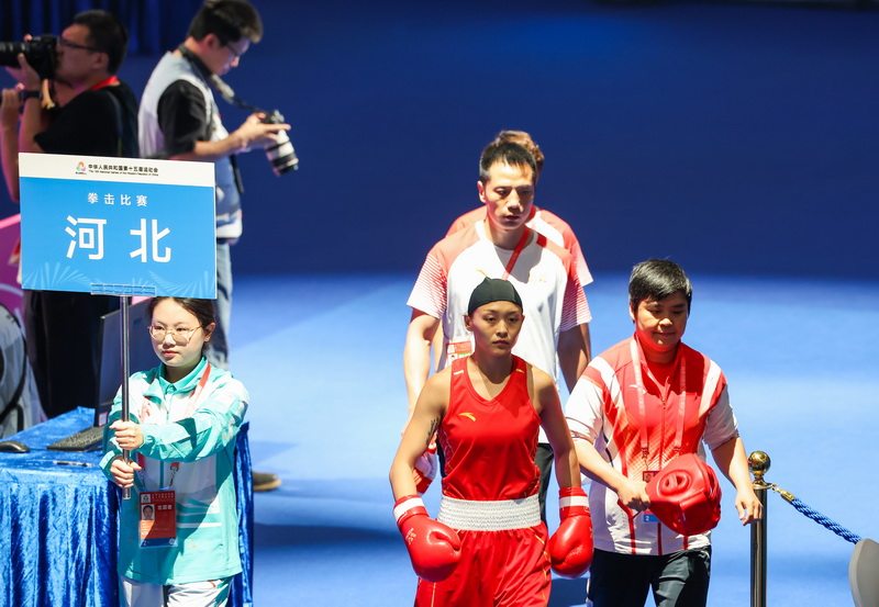 11月13日,河北运动员常园(右二)步入赛场。