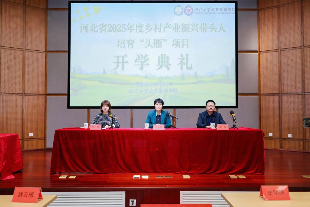 11月12日,河北省2025年度乡村产业振兴带头人培育“头雁”项目第十一期优质农产品品牌创建与加工专题班、第十二期农业经理人专题班在浙江大学举行开学典礼。河北省农业广播电视学校校长马金翠、浙江大学公共管理学院副院长谭荣等出席开学典礼。