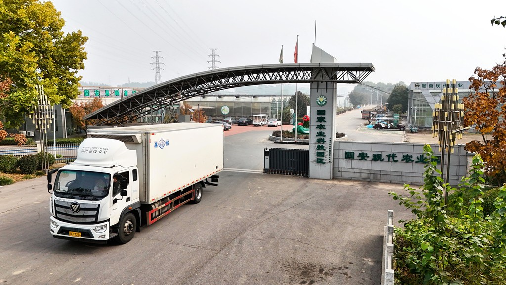 10月28日,一辆满载净菜的货车驶出固安县顺斋瓜菜种植专业合作社。