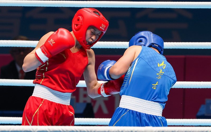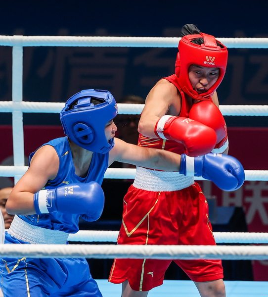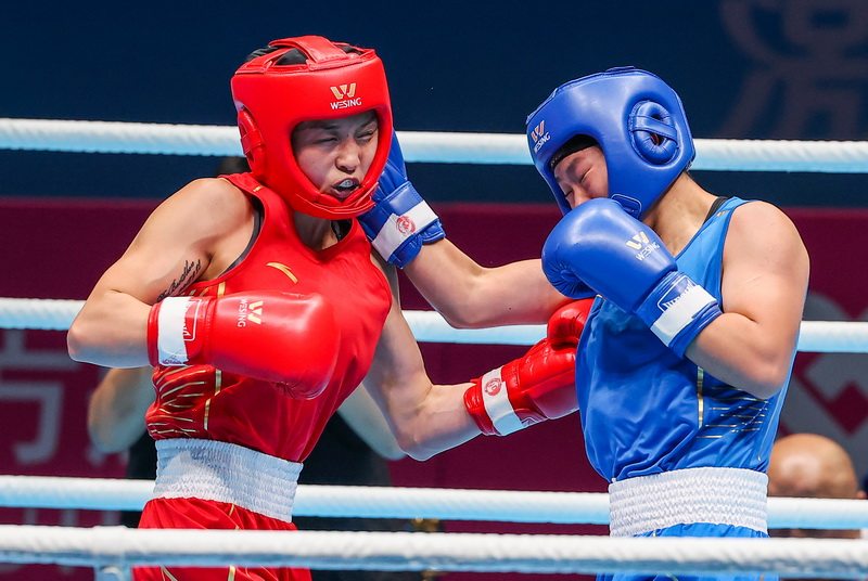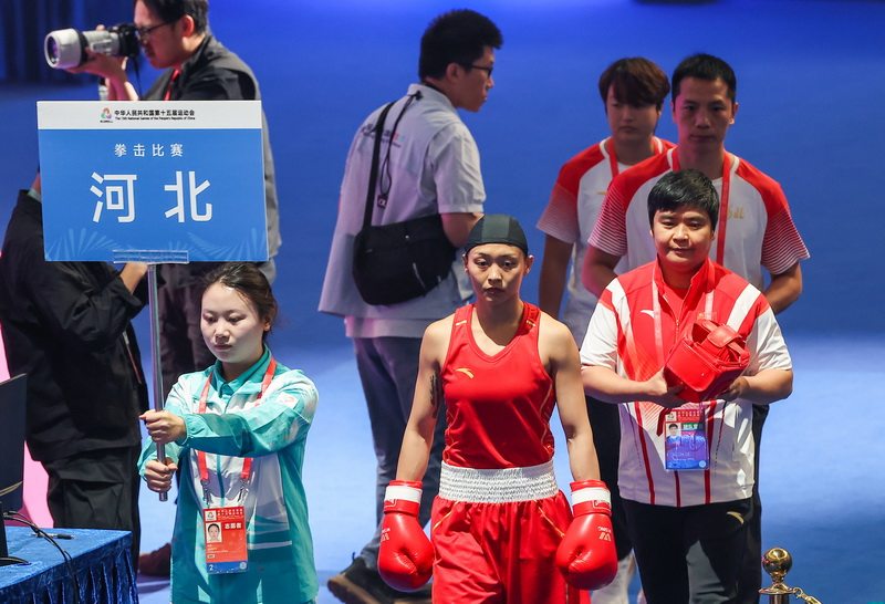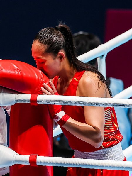 11月14日,赛后河北运动员常园亲吻拳击台。