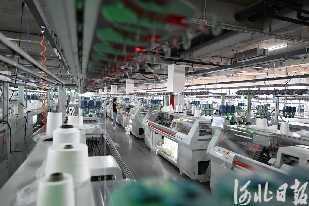 清河县新华·慈星羊绒针织数字化共享工厂内,工人在利用一线成型电脑横机加工羊绒服饰产品。河北日报记者赵永辉摄(资料片)