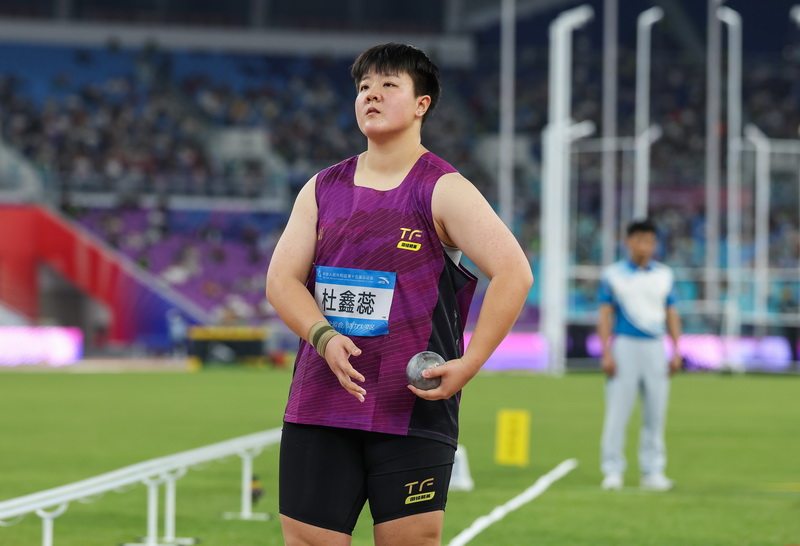 11月15日,河北运动员杜鑫蕊在铅球及格赛中。