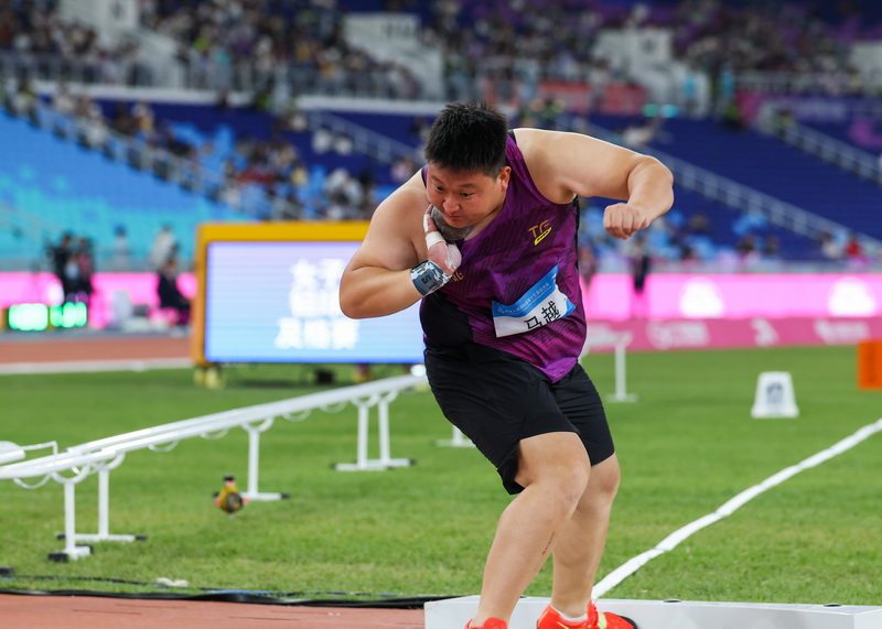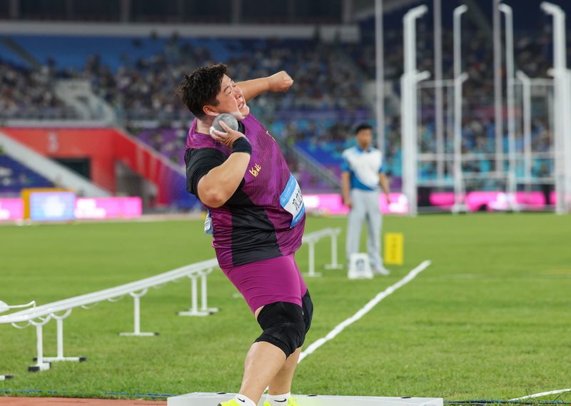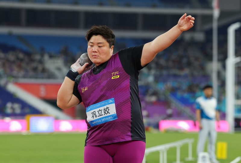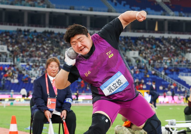 11月15日,河北运动员巩立姣在铅球及格赛中。