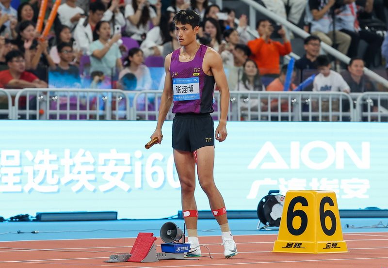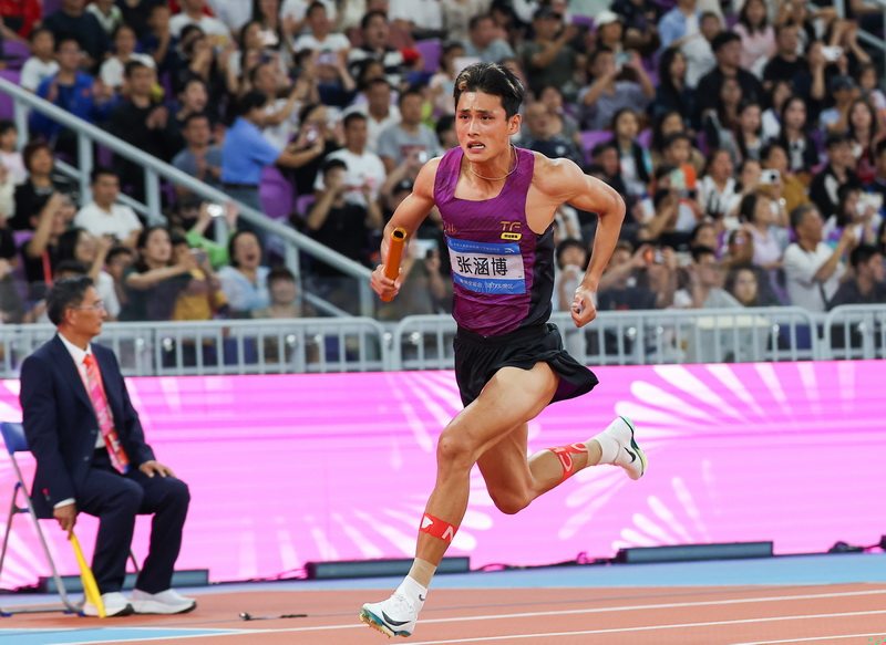 11月15日,河北运动员第一棒张涵博在比赛中。
