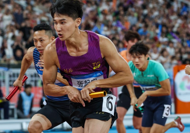 11月15日,河北运动员第三棒张起宁在比赛中。