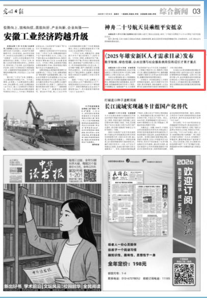 目录显示,未来雄安新区人才需求将持续向高端化、复合化和新兴化方向发展,数字智能类、绿色低碳类、公共治理与社会服务类岗位将成为雄安新区引才育才重点领域。