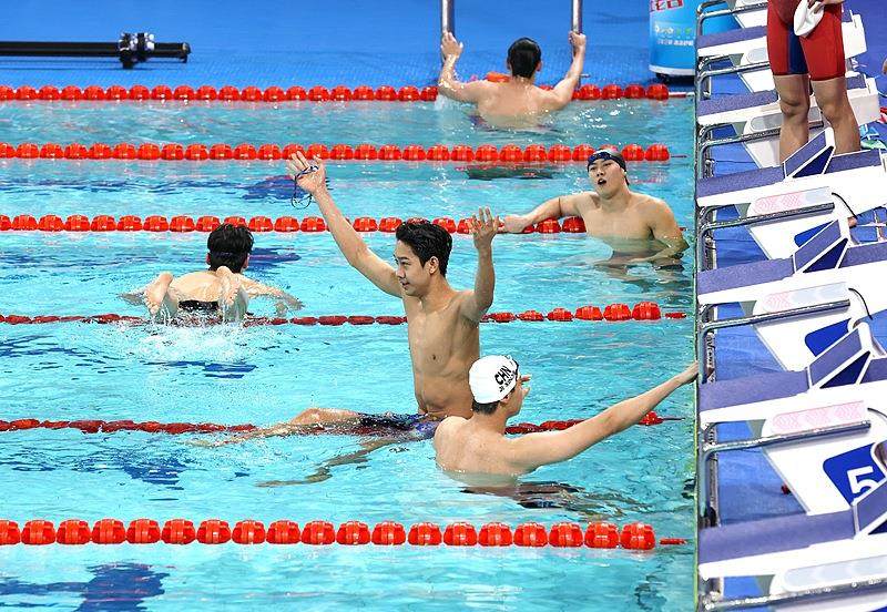 △男子4*200米自由泳接力决赛,张展硕领衔山东队获得冠军。
