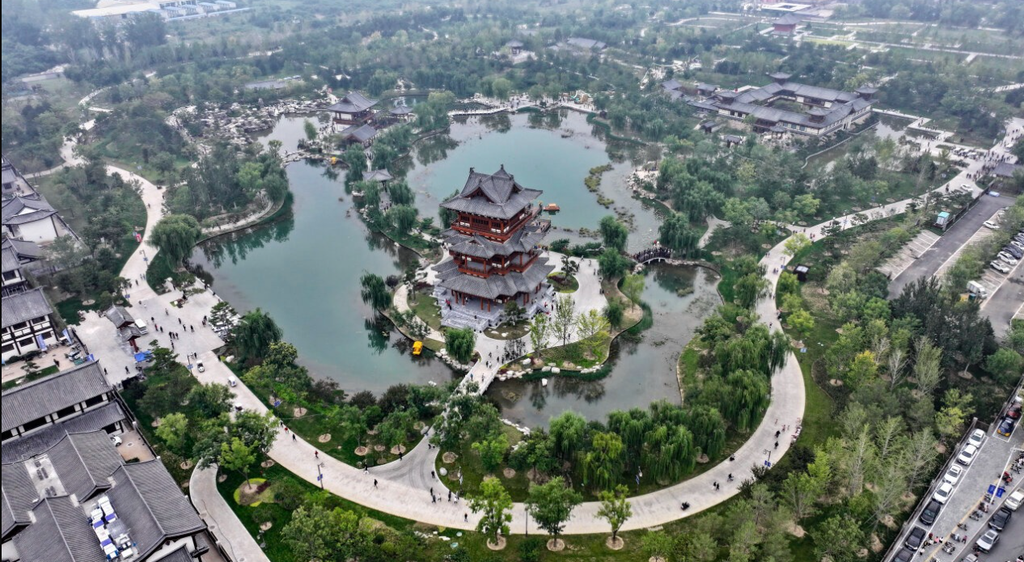2024年9月26日拍摄的河北定州众春园(无人机照片)。新华社记者牟宇摄(资料片)