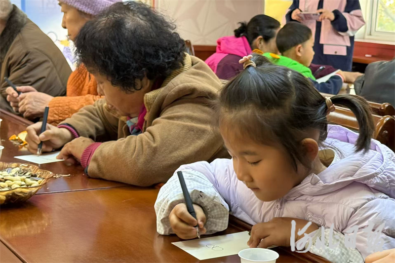 “家庭默契大考验”“你比划我猜”等互动游戏环节,将现场气氛推向高潮,欢声笑语中,家庭成员间的理解与默契悄然升温。在经典共读环节,大家围坐炉边,共同品读《傅雷家书》节选,围绕生活教养、读书求学等话题展开深入交流。活动尾声,居民们纷纷在“暖心帖”上写下对家人的深情寄语,并手持寄语合影留念。