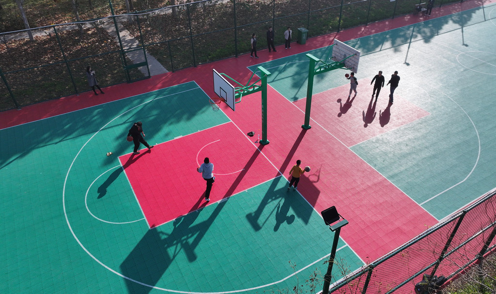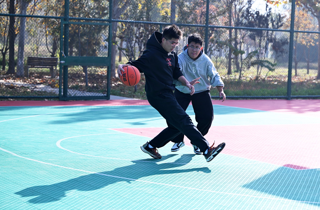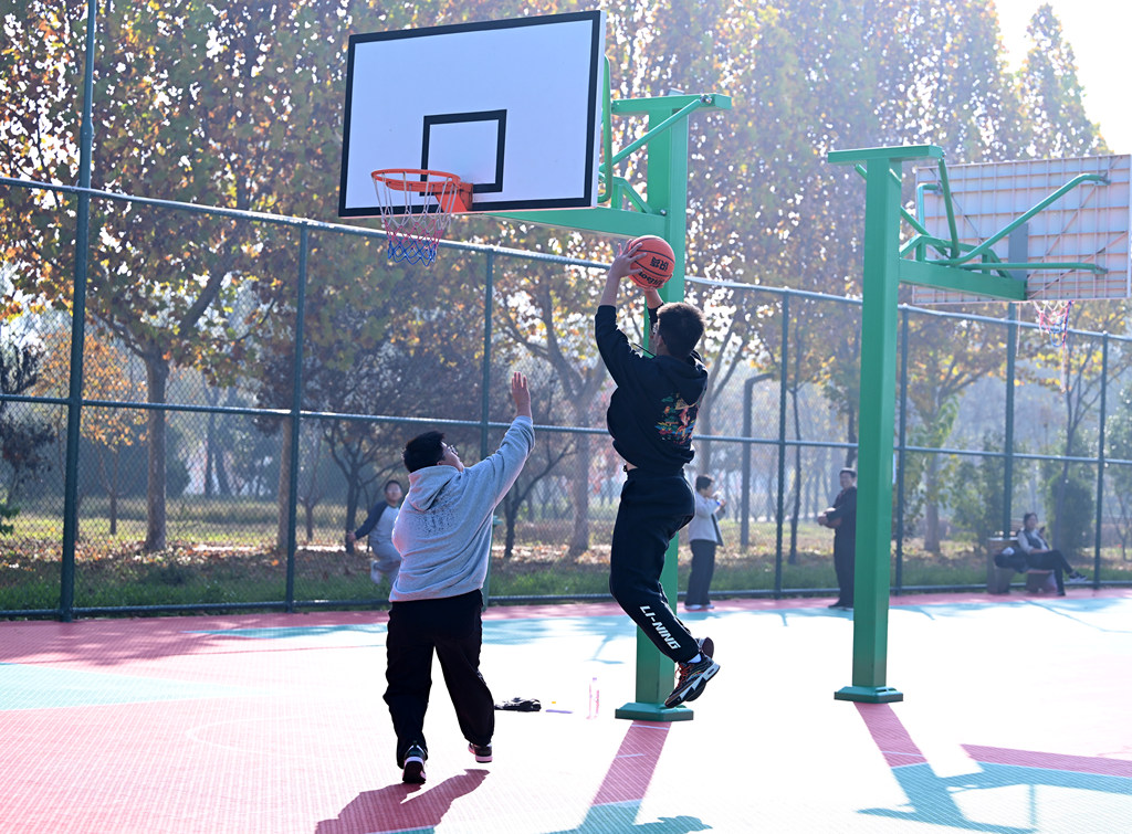 11月15日,市民在南宫市南宫湖公园蓝球场打球。
