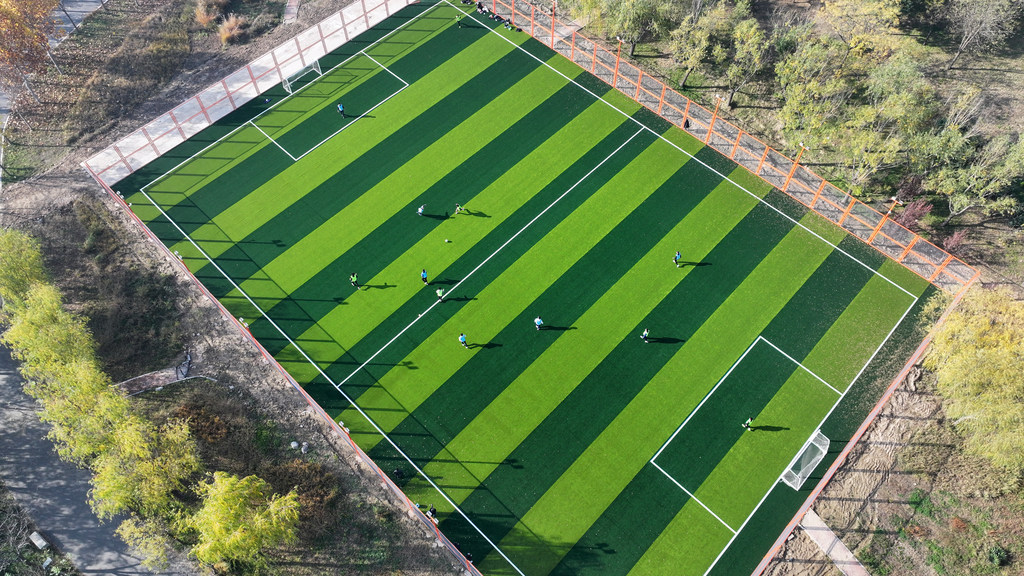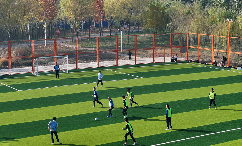 11月15日,足球爱好者在南宫市南宫湖公园足球场踢球。