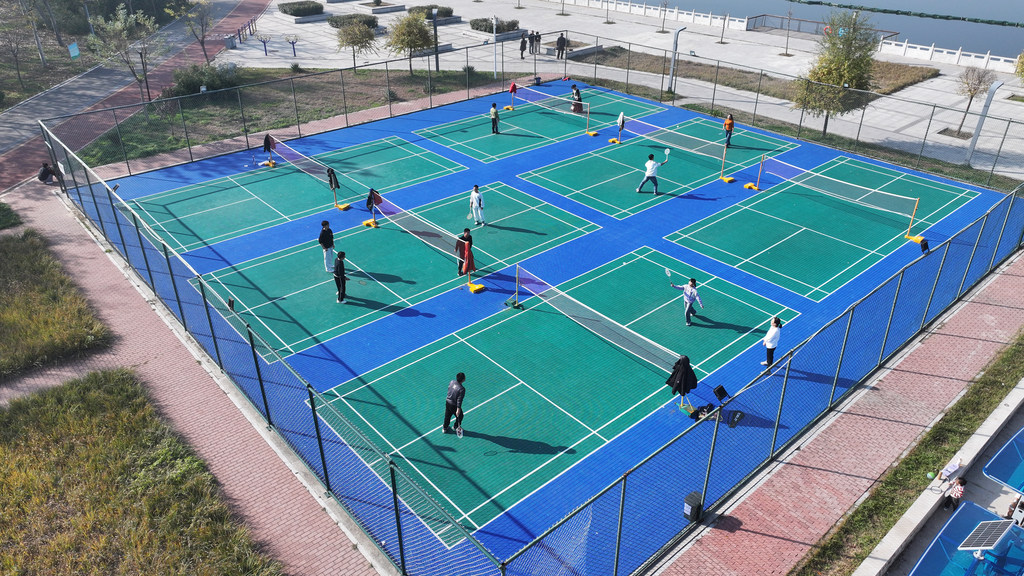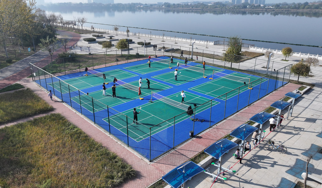 11月15日,市民在南宫市南宫湖公园羽毛球场打球。