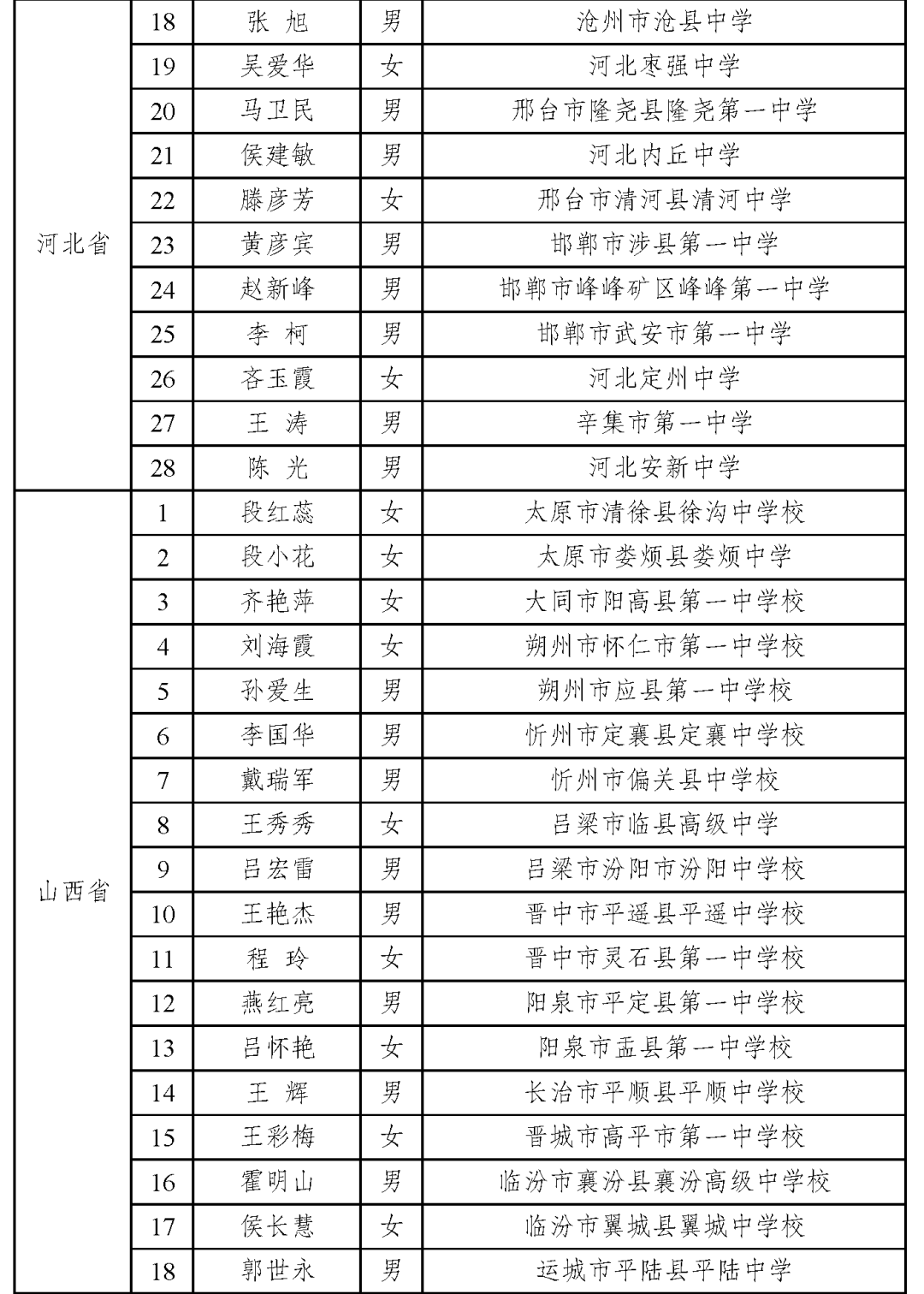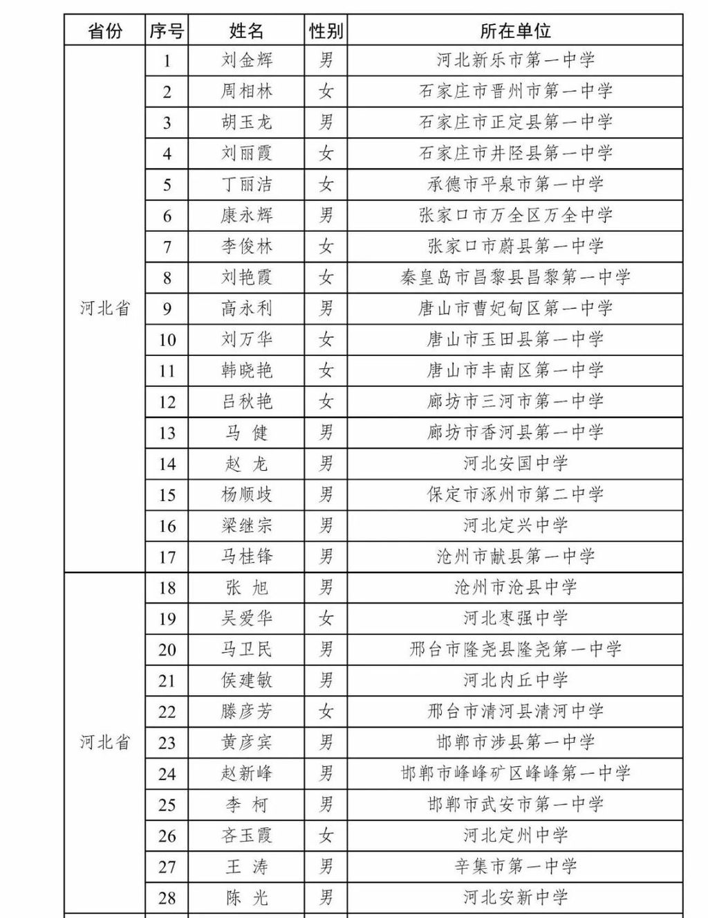 其中,河北28人入选