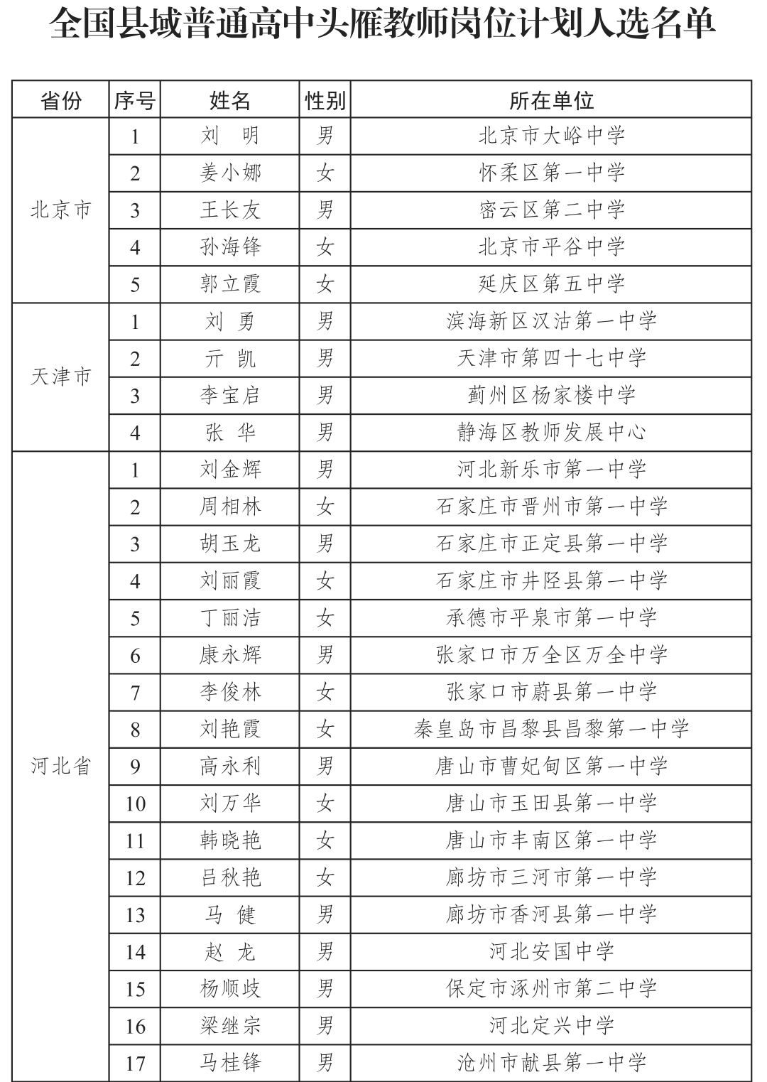日前,教育部发布通知,经学校自主申报、省级教育行政部门审核公示、等额推荐、会议评议,确定首批全国县域普通高中头雁教师岗位计划入选教师600人。