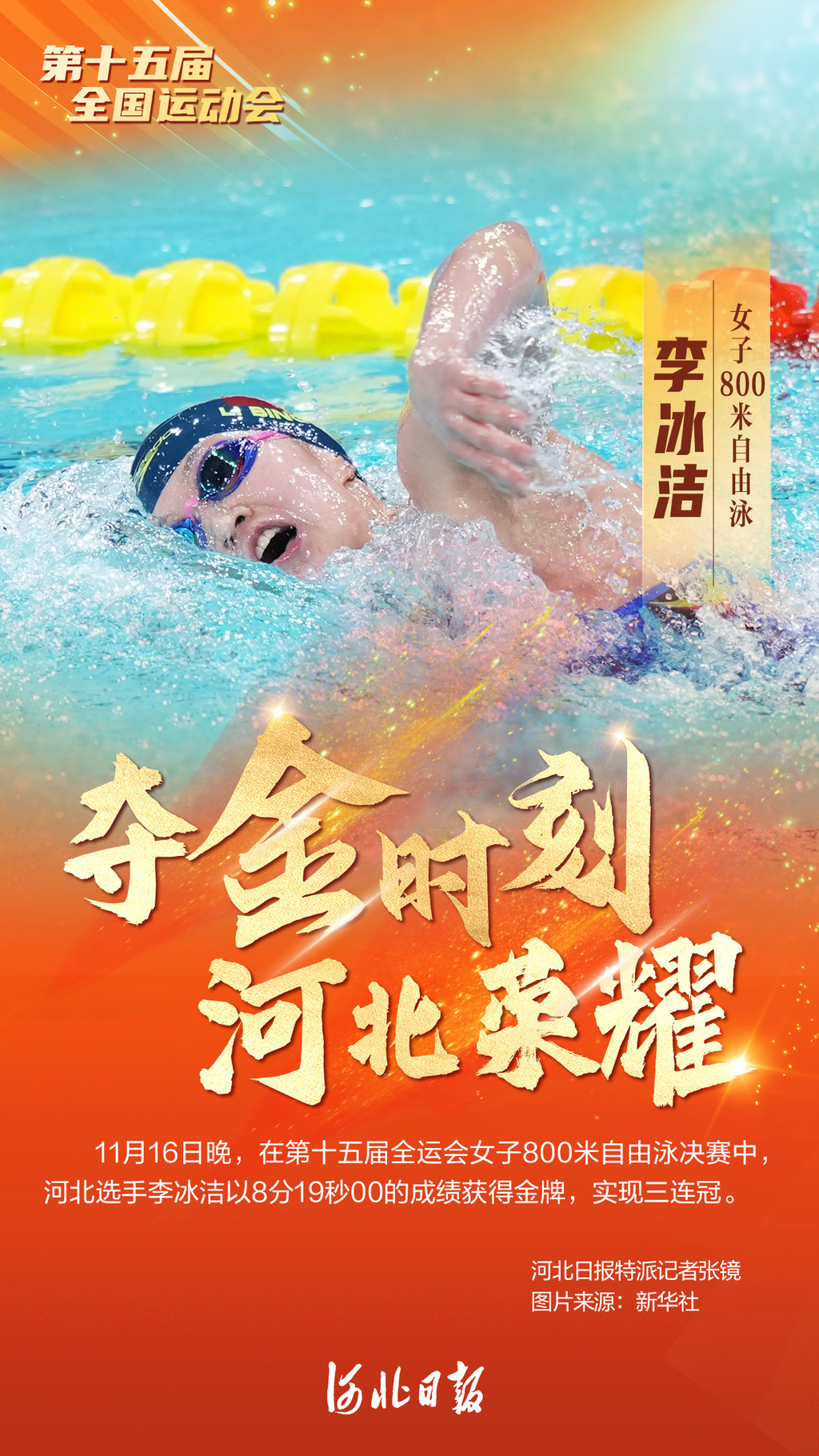 女子中长距离自由泳赛场,最闪亮的依然是我省运动员李冰洁。