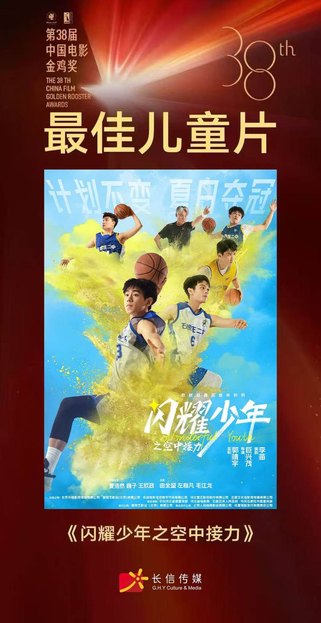 11月15日晚,第38届中国电影金鸡奖颁奖典礼上,一部聚焦河北省石家庄二中篮球队青少年成长的影片《闪耀少年之空中接力》摘得最佳儿童片桂冠。该片由中共河北省委宣传部、河北省电影局、石家庄市人民政府、石家庄市委宣传部联合摄制。影片主创人员第一时间听到获奖消息后激动不已。他们认为,这个奖项,不仅是电影人的荣光,更是对一群平凡而坚韧的燕赵少年在篮球场上挥洒汗水、坚守梦想,以及对一个城市与一代年轻人的精神认可。记者第一时间对该片导演巨兴茂和编剧李苗进行了采访。