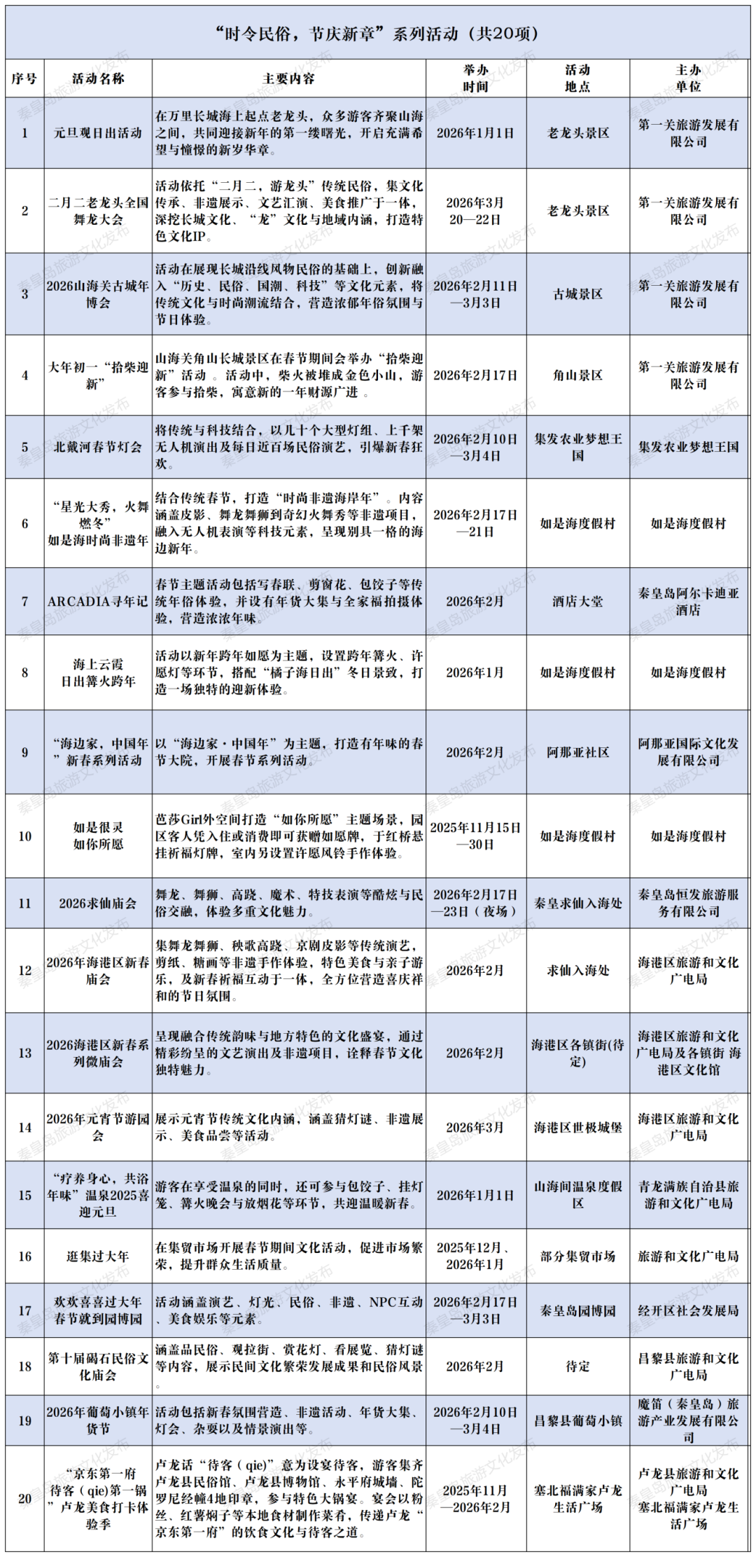 秋冬出游正当时,秦皇岛市推出一系列秋冬季出游活动,无论你计划利用长假远行,还是只想在周末悠闲游玩,这里都有适合你的目的地推荐、实用贴士和新鲜玩法,轻松规划每一段美好旅程。