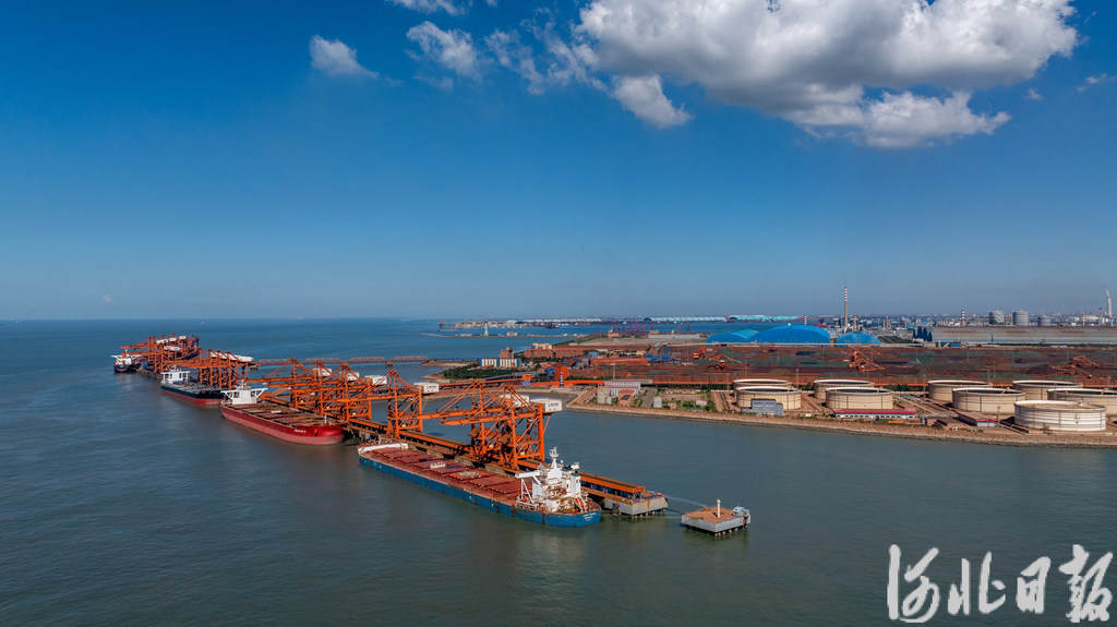 河北港口集团曹妃甸矿石码头一片繁忙景象。河北日报资料片