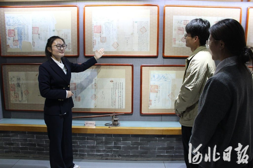 11月14日,发票博物馆讲解员陈子怡(左)正在讲解。 河北日报记者 桑 珊摄