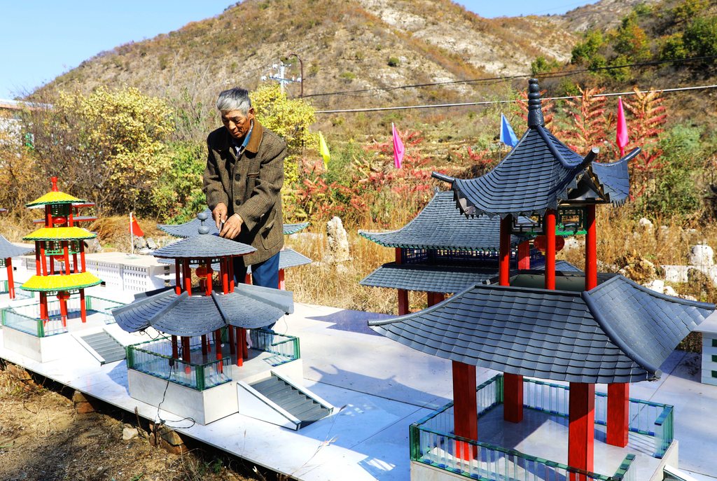 30多年来,李国志凭借一双巧手先后设计出仿真楼房模型、仿真古塔模型、仿真凉亭模型等30多件微型景观建筑作品,为山村生活增添别样的艺术色彩。