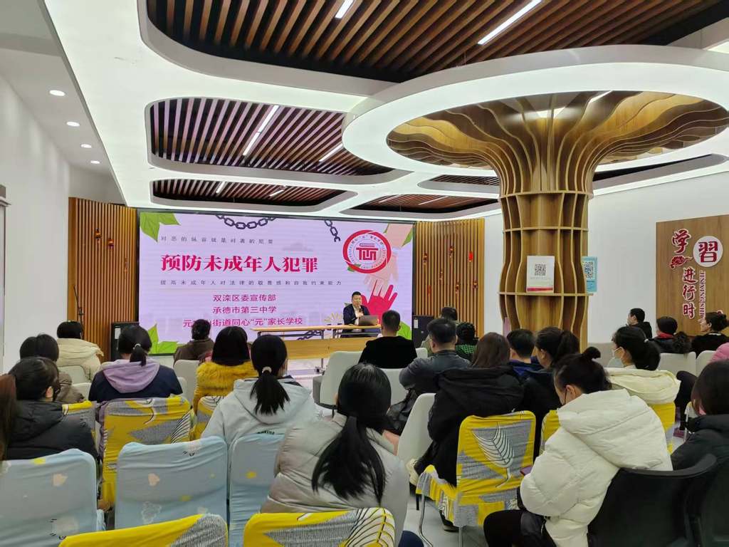 河北日报客户端讯(孙思)11月16日,双滦区元宝山街道“同心‘元’”家长学校举办“预防未成年人犯罪”主题宣传活动。活动特邀河北博开律师事务所副主任、团市委未成年人社会司法队伍人才库候选人成立伟律师担任主讲人,以专业视角为学生家长带来一场深度分享,筑牢家庭在未成年人犯罪预防中的第一道防线,守护青少年健康成长。