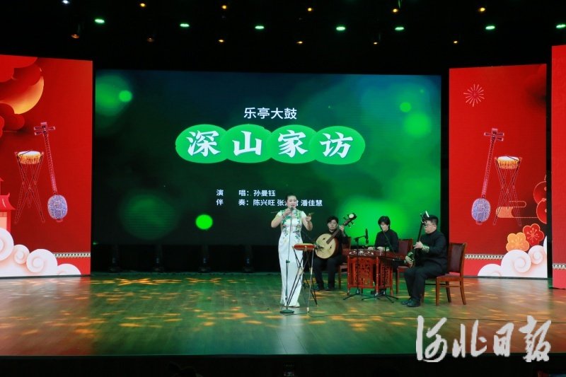 在河北省第六届乐亭大鼓书会演出中,来自京津冀地区的乐亭大鼓名家与非遗代表性传承人登台献艺,倾情演绎《二十四春》《认亲》等曲目,婉转唱腔与精湛表演赢得现场观众阵阵掌声;在鼓曲展演中,由“京津冀”名家演出优秀鼓曲节目,其中包含京东大鼓、西河大鼓、天津快板等曲艺形式;在分会场表演中,乐亭大鼓非遗代表性传承人、优秀爱好者深入基层开展惠民演出,将传统文化送到群众家门口。