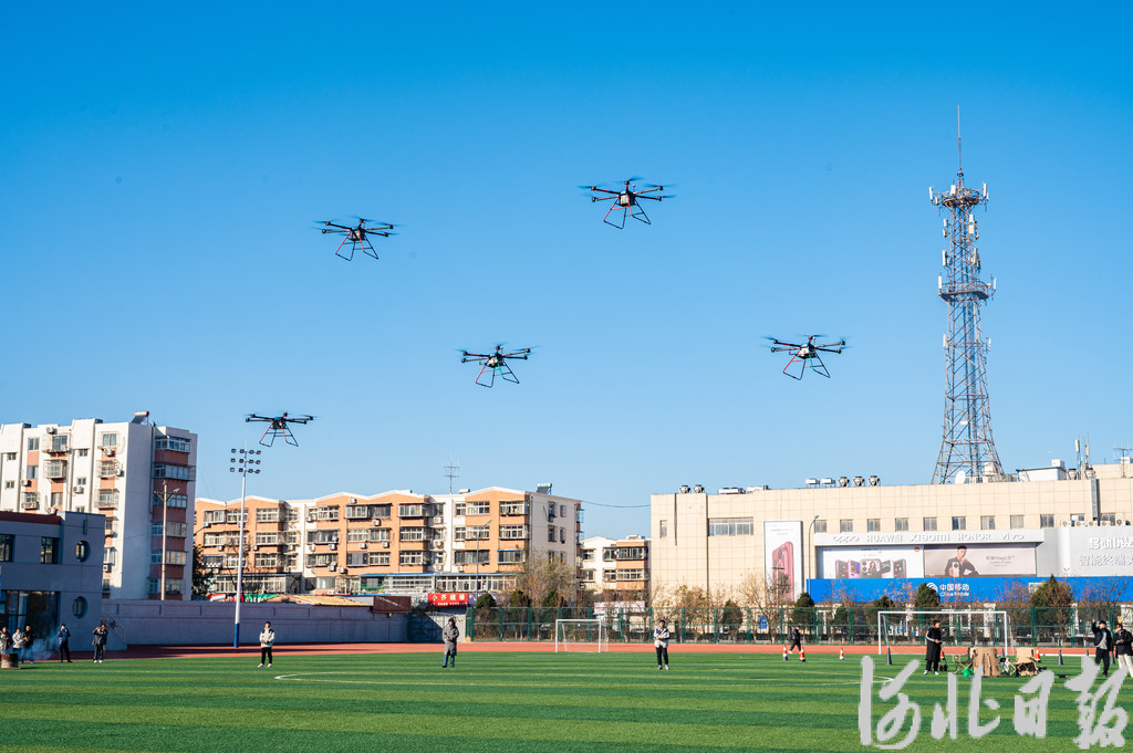 2025唐山低空经济与无人机技术应用交流大会展演现场,小型多旋翼无人机飞行表演。