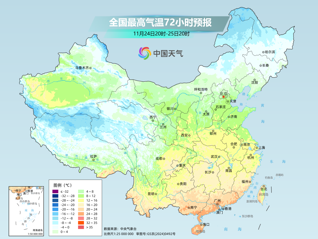 明天升温仍会继续,最高气温10°C线将北抬至东北地区中部,15℃线可达河北中部,长江以南普遍接近或超过20℃,华南气温将陆续重回25℃以上。