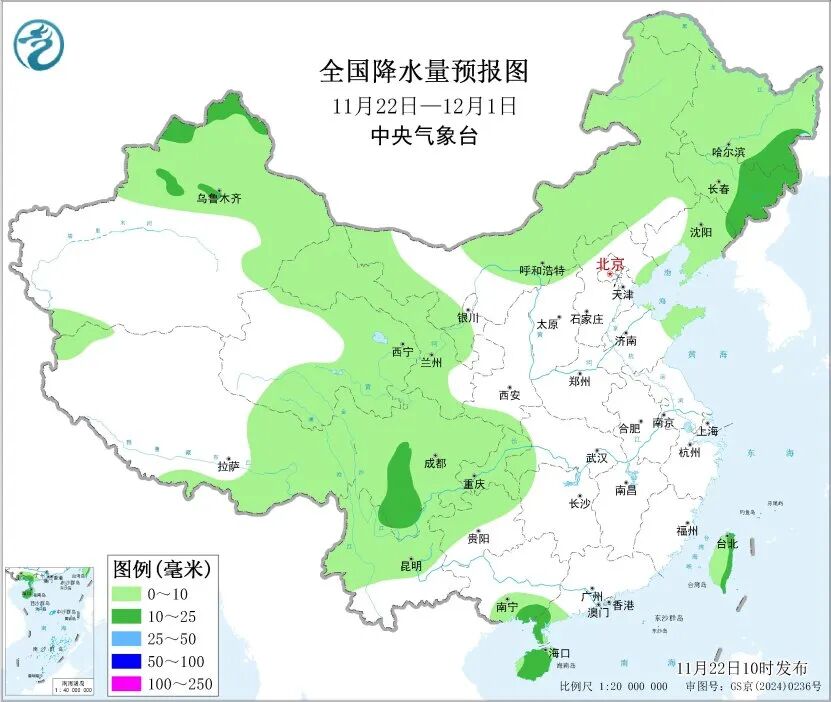 常年小雪期间,石家庄、太原、济南、郑州、西安等地会迎来初雪,不过今年来看,上述地区未来10天降雪的可能性较小,还需再等等。