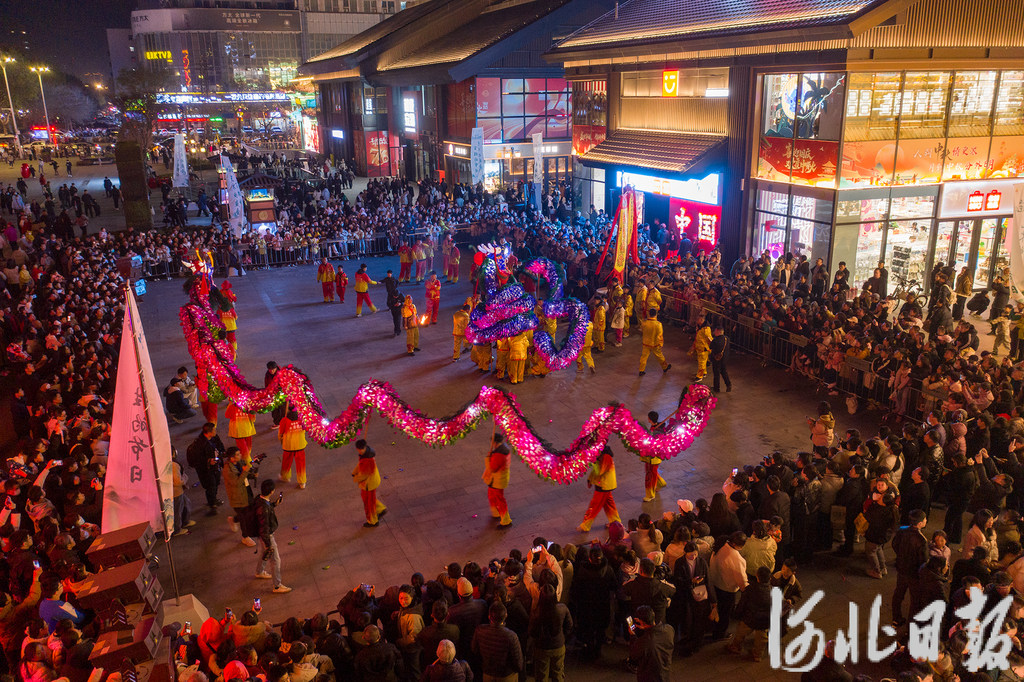 11月22日,第十九届中原民间艺术节在邯郸道历史文化街区开启,民俗表演曲周龙灯吸引众多游客。董源摄