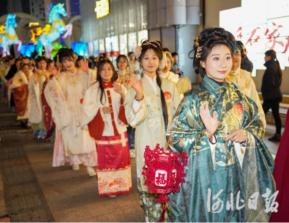 河北日报客户端讯(乔戍娜)11月22日,正值“1122汉服出行日”,一场别开生面、规模浩大的霓裳锦绣活动,在石家庄湾里庙举办,为第三届湾里庙灯会再添一抹流动的国风华彩。