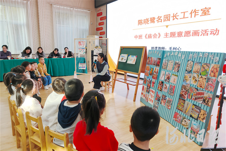 近日,陈晓鹭名园长工作室以“幼儿主题意愿画活动教师过程性指导策略”为主题的教研活动,在石家庄市第一幼儿园举行。来自陈晓鹭名园长工作室成员、结对共建园代表,以及各区(县)幼儿园园长和骨干教师,共计90余人参加。赵寒冰、逯娜摄影报道