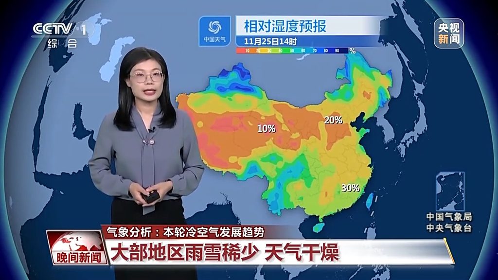 冷空气带来的雨雪并不多,而且在偏北风吹拂之下,天气会非常干燥。像是西北华北等地,午后的相对湿度可能只有20%左右,局部地区甚至不足10%,就连南方相对湿度也只有30%上下,所以整体都会是比较干燥的状态,大家要及时补充水分,并且注意用火安全。