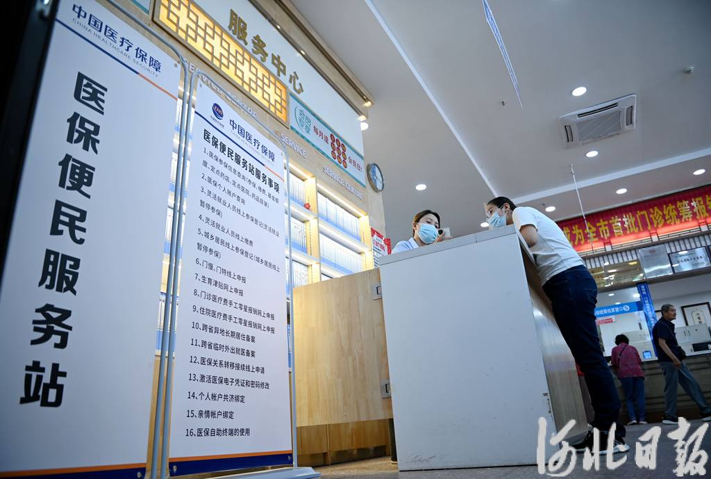邯郸市参保群众(右)在邯郸医药大厦医保便民服务站咨询。河北日报资料片