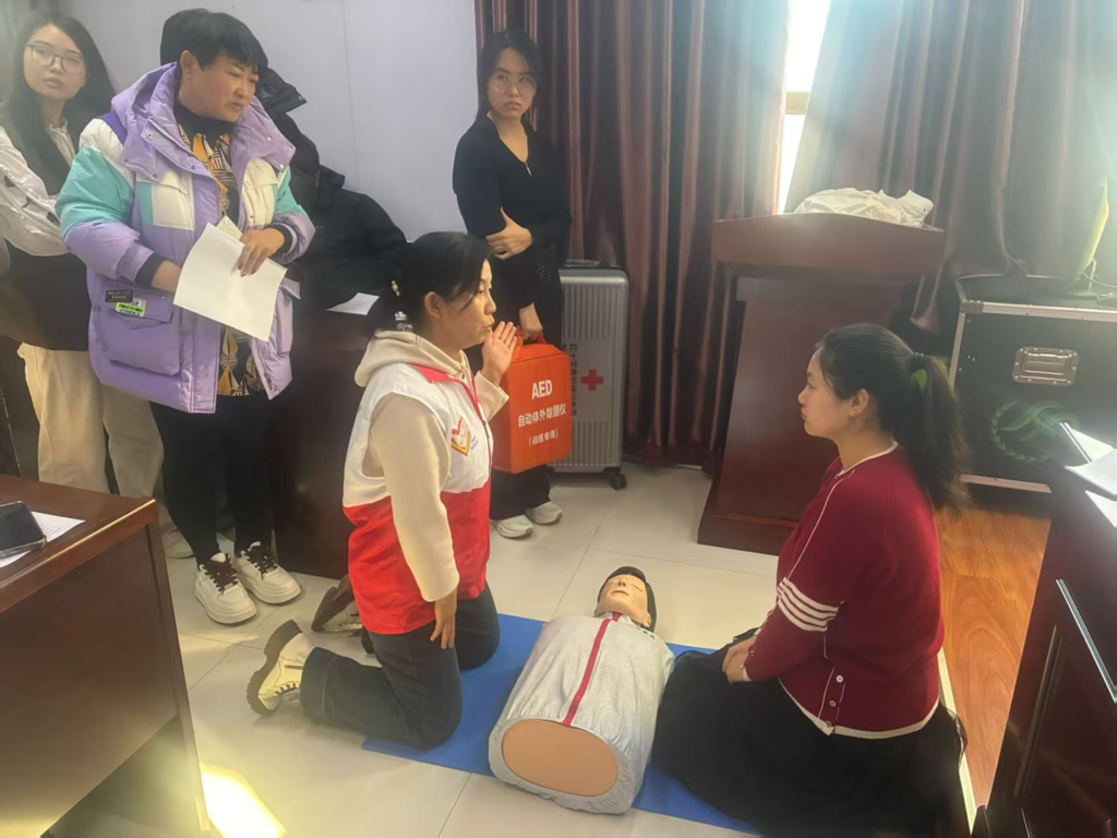 红十字会讲师通过案例解析、动作示范,系统拆解心肺复苏(CPR)、海姆立克急救法、创伤止血包扎等核心技能,重点强调心脏骤停“黄金4分钟”救治要点与120规范拨打流程。实操现场,学员分组借助模拟人实战演练,讲师一对一纠正按压深度、呼吸频率等关键动作,确保人人掌握标准流程。