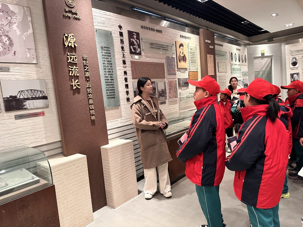 学校志愿者为少先队员们佩戴校徽、发放银杏叶脉书签。队员们在志愿者“一对二”的陪伴下,队员们与银杏叶同框合影,听志愿者讲解银杏文化。在校史馆与交通展览馆,专业讲解员用趣味故事讲述交大办学历史与高铁技术成就。在人工智能AI课堂上,队员们近距离感受科技魅力,“知识小问答”环节让现场氛围愈发活跃。