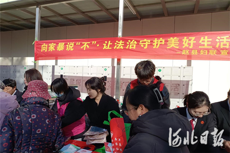 河北日报客户端讯(朱涛、孔文浩)11月25日是“国际反家庭暴力日”。当日,赵县妇联联合县委政法委、县检察院、县法院、县公安局、县司法局、县总工会、团县委、县工商联、县残联、县计生协会、赵州镇社区等单位,在赵县信誉楼前开展反家庭暴力普法宣传活动。