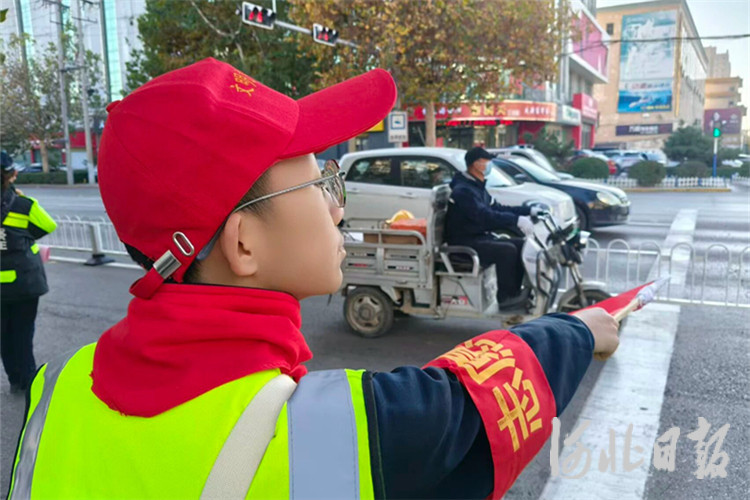 河北日报客户端讯(金池、王玉涵)近日,无极县实验初中东校区组织20名七年级少先队员志愿者,走上无极县城主要路口开展交通志愿服务活动。