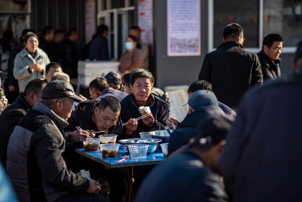 开业首日,枣强县马屯镇东良党村村民在食堂用餐。张树伟摄