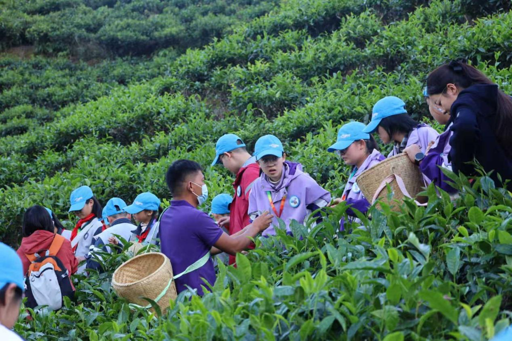 边疆沃土体悟“三茶统筹”的生态智慧与民族情怀。11月20日,师生抵达临沧市双江县。在双江县第一完全中学举行“双向奔赴山海行·我为国门站班岗”爱国主义教育主题实践活动启动仪式,两地学子共叙情谊、共展才艺,雄安师生在非遗展演中踊跃学跳民族舞蹈,在文化交融中铸牢中华民族共同体意识。随后,雄安师生走进勐库王家庄园,体验采茶制茶全流程,感悟边疆特色产业对人民增收、团结融合的重要意义,理解“产业兴则边疆兴,民族富则国家强”的深刻逻辑。次日上午,在双江县展览馆及“三茶统筹”研究院,雄安师生系统了解双江茶叶产业从传统到现代的转型历程,全方位认识边疆地区在国家战略指引下的发展活力与文化底蕴。