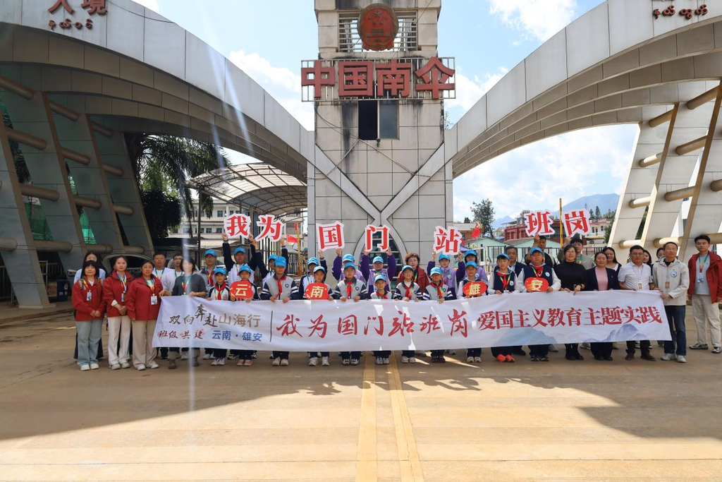 “双向奔赴山海行”全国班级(中队)共建项目,自2024年8月启动,由雄安容和金源小学发起,北京四中雄安校区第一实验学校、雄安容西云溪小学、雄安容西华兴初级中学、雄安雄东第一高级中学相继加入共建行动,与全国各省学校建立手拉手共建关系,先期通过互通信件、线上的互动,同升国旗、共上思政课,异地同课堂,进行了区域资源共享;2025年11月,雄安新区与云南省建立拉手共建的五所中小学校联合河北工业大学马克思主义学院,开展了此次“双向奔赴山海行·我为国门站班岗”爱国主义教育主题实践,依托云南红色基因与民族资源,雄安师生代表走进边关、校园与村寨,在沉浸式体验中感知国家主权、体悟团结伟力,让家国情怀在行走中扎根生长。