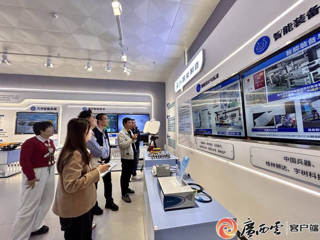 11月27日,2025年主流媒体看广西产业园区高质量发展采风团来到位于桂林高新区的桂林电子科技大学人工智能展厅,一幅以AI驱动产业革新与社会进步的生动图景徐徐展开,完整呈现了从基础支撑到融合应用的全生态链条。