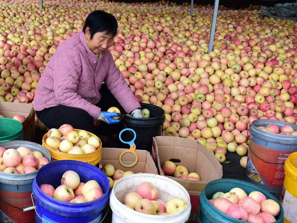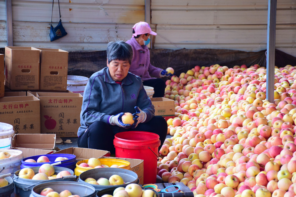 11月10日,果农在临城县阎家庄村苹果种植基地分选苹果。