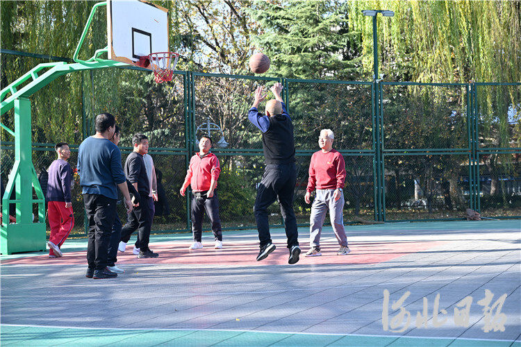 11月27日,市民们在河北省儿童少年活动中心篮球场打篮球。