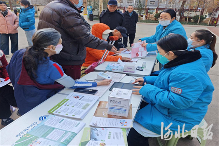 河北日报客户端讯(张元霞)11月26日上午,石家庄市裕华区医保局联合裕华区税务局、裕兴街道办事处、裕兴社区卫生服务中心、石家庄市三院、裕翔园社区居委会等单位,在裕翔园小区小广场举办医保宣传义诊活动。