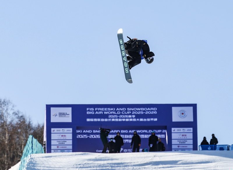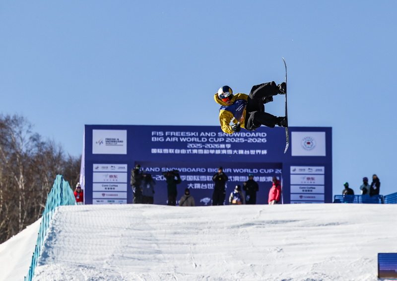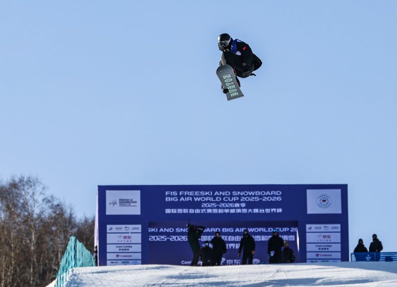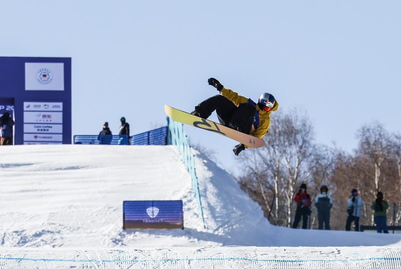 11月29日,中国选手葛春宇在单板滑雪男子大跳台决赛中。
