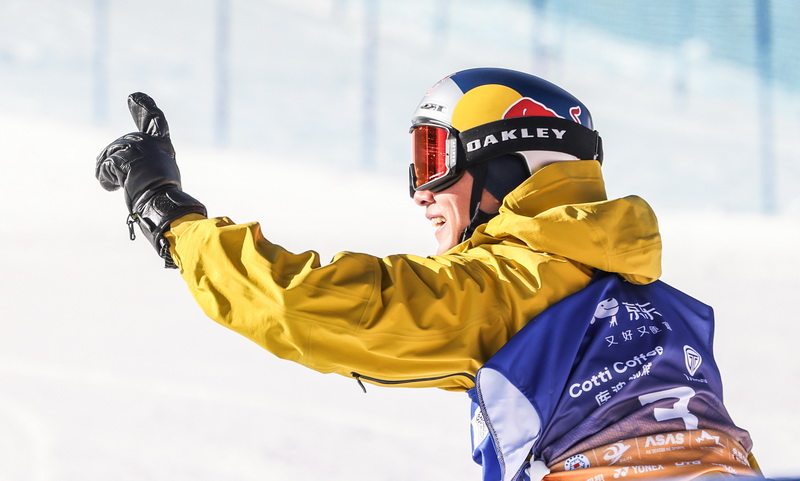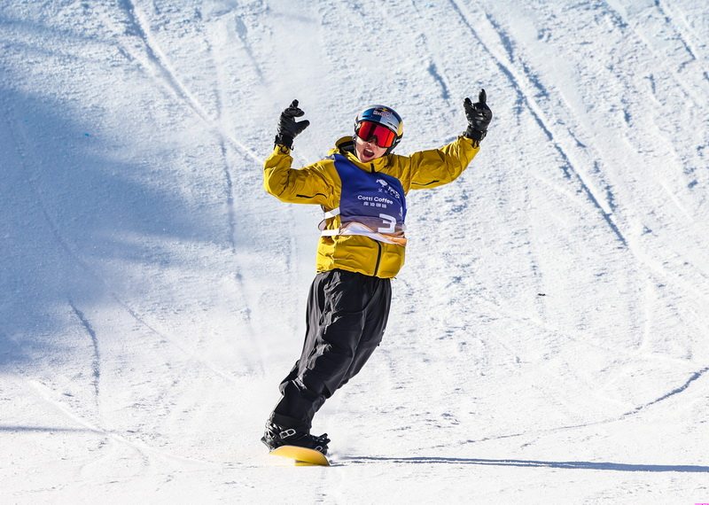 11月29日,中国选手苏翊鸣庆祝胜利。