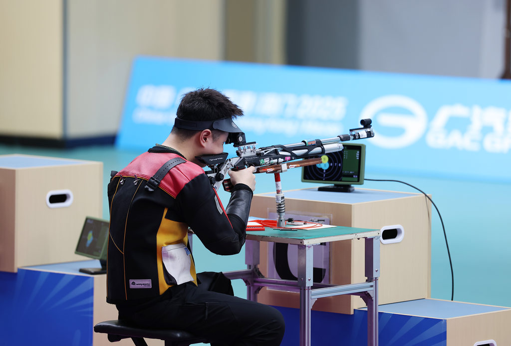 11月29日,杨闯鹏在SH2级混合10米气步枪立射决赛现场。