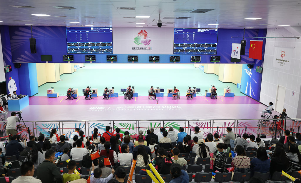 11月29日,全国第十二届残运会射击比赛SH1级混合50米口径步枪卧射决赛现场。