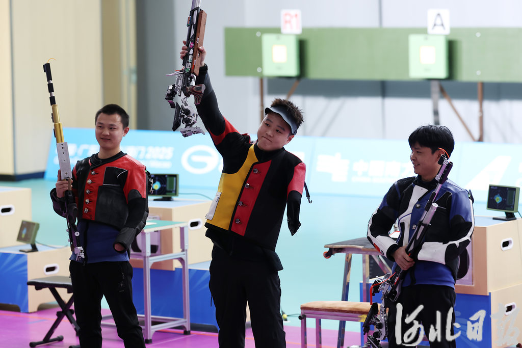 11月29日,杨闯鹏(中)夺得SH2级混合10米气步枪立射金牌。河北日报记者 史晟全